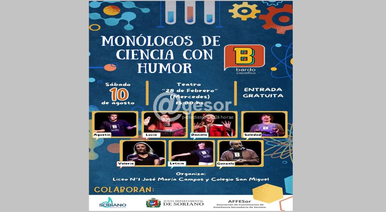 Este´sábado 10 de Agosto, a las 15 horas, en Teatro 28 de Febrero de Mercedes, con entrada libre y gratuita se presenta Bardo Científico, Monólogos de Ciencia con Humor. Un espectáculo abierto a todo público y especialmente recomendado para estudiantes.