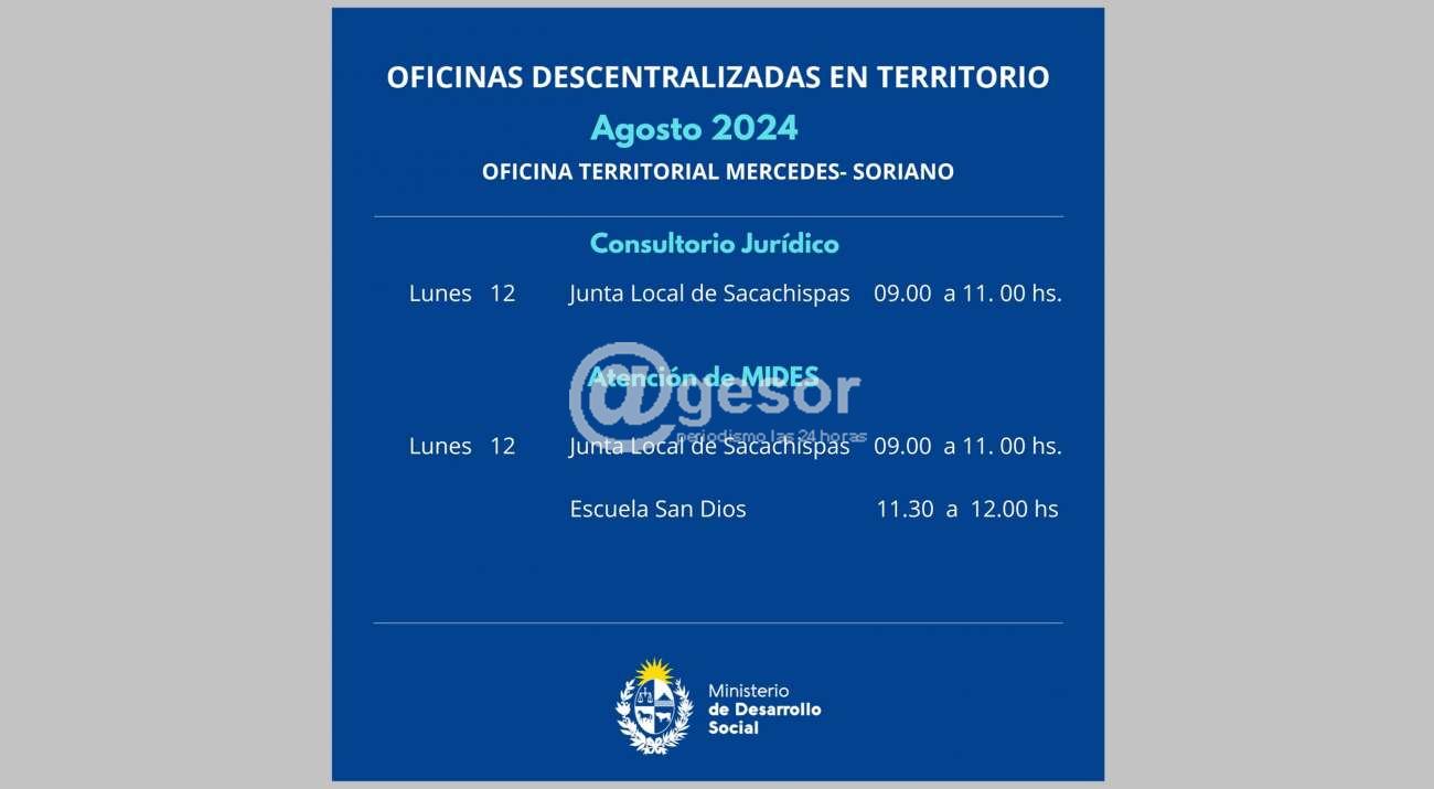 Continúan las recorridas por el departamento de las oficinas descentralizadas del MIDES. El lunes 12 de agosto atenderá en Sacachispas y San Dios.