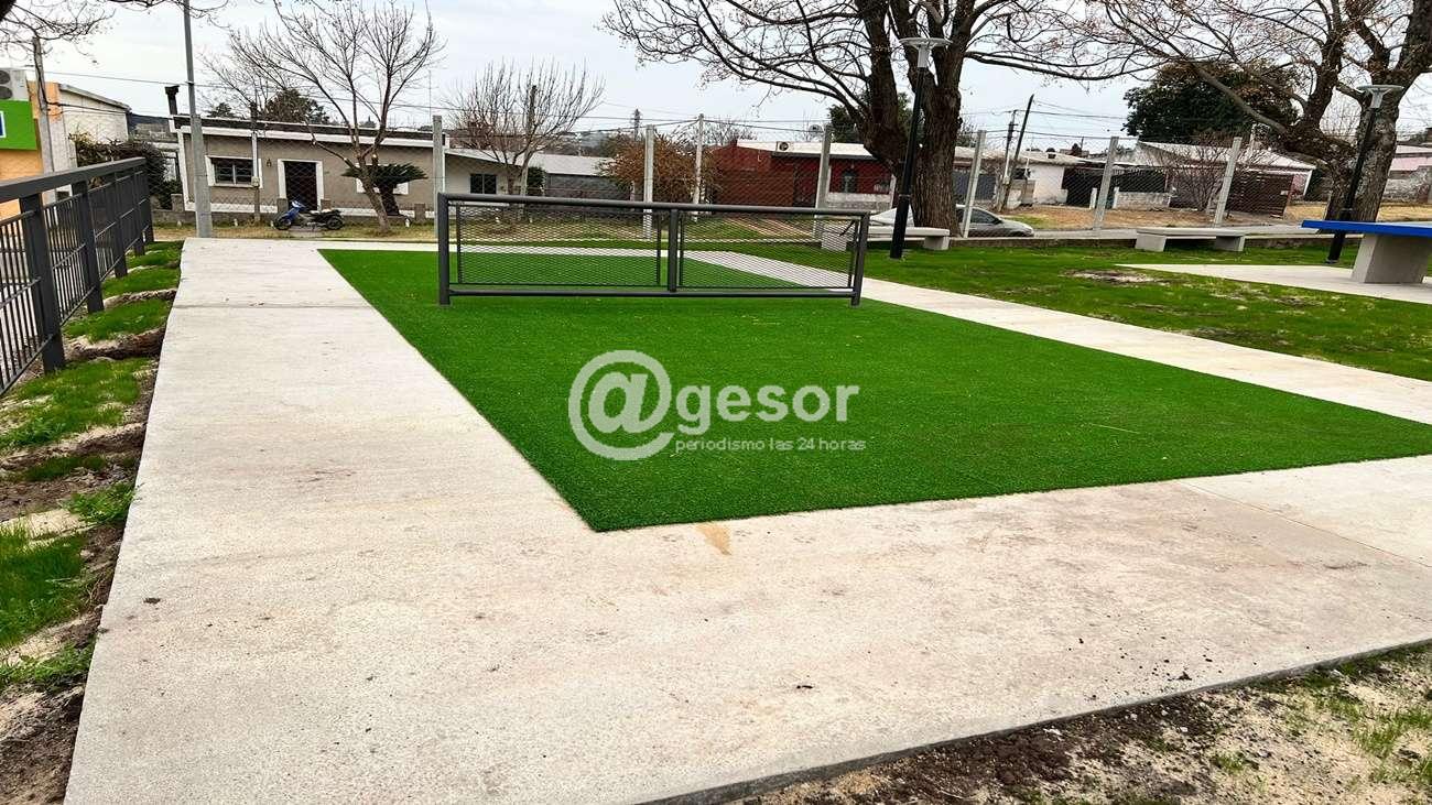 Se reacondicionó la cancha de fútbol, construcción de nuev o pavimento de hormigón y colocación de modernos tableros para la cancha de básquetbol, conformación de una cancha de fútbol - tenis con césped sintético. Se agregaron nuevos juegos infantiles y de calistenia, así como moderno mobiliario urbano (bancos, mesas, papeleras, etc.).
