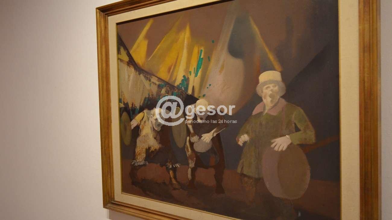 Algunas las vi colgadas en el año 78, pero lo más significativo tal vez es que los hijos míos, el mayor tiene 29 años, y nunca vieron colgada la obra del abuelo. Es la primera exposición que conocen de la obra del abuelo colgada. Entonces, sabemos, tú sabes como plástico que eso es que una cosa es lo que uno hace en el taller o cuando lo tiene en su casa rodeado de un montón de cosas, y otra cosa es cuando la obra se la coloca para ser vista, destacada, en una superficie apropiada como en una sala de exposiciones como esta, que está muy bien.