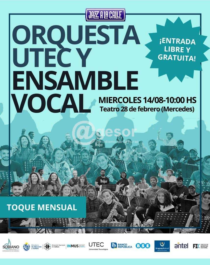 El movimiento cultural Jazz a la Calle informa que este miércoles 14 de agosto a las 10.00 horas se realiza el toque mensual, en el teatro 28 de Febrero con entrada libre y gratuita estarán actuando Orquesta UTEC y Ensamble Vocal.