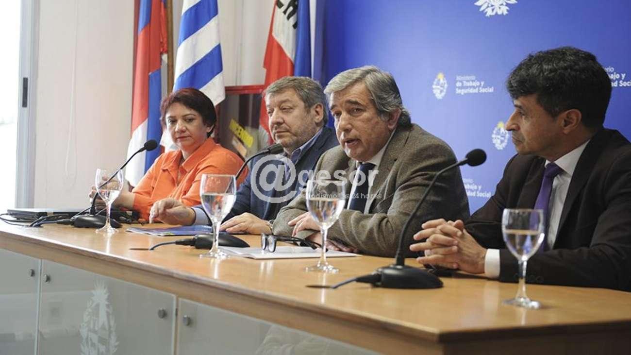 Arizti participó, este lunes 19, en una conferencia que se realizó en la sede del Ministerio de Trabajo y Seguridad Social, acompañado por el subsecretario de la cartera, Daniel Pérez; el presidente del Banco de Previsión Social, Alfredo Cabrera; la titular de la Liga de Amas de Casa, Mabel Lorenzo, y la presidenta del Sindicato Único de Trabajadoras Domésticas, Laura Rivero.