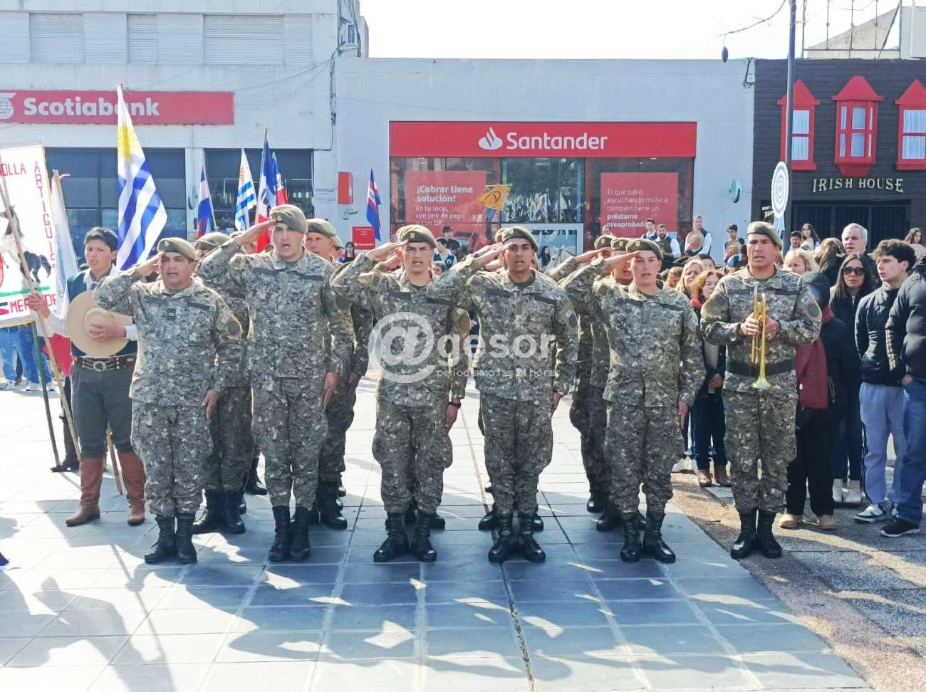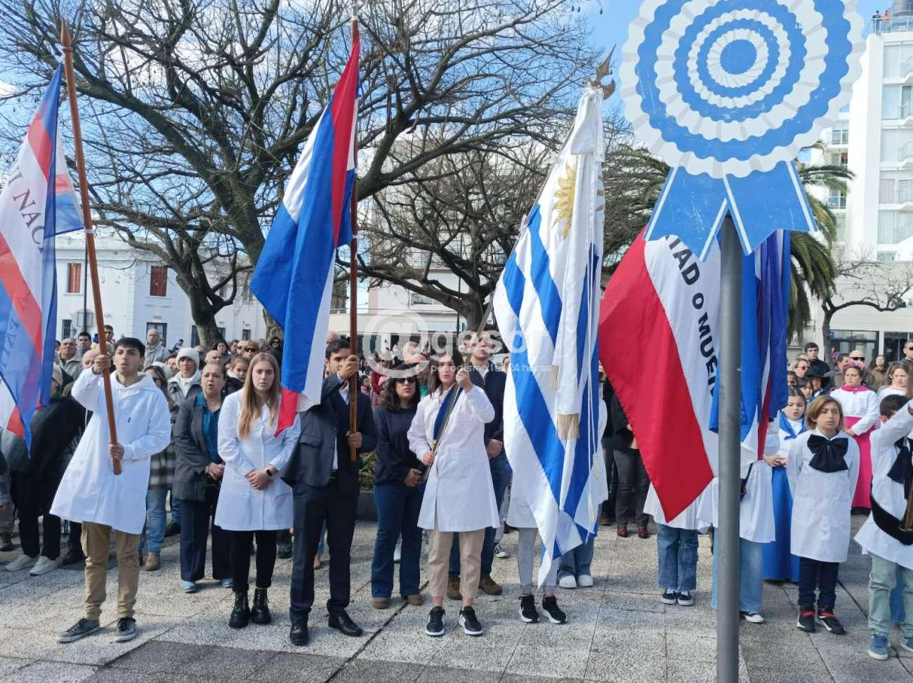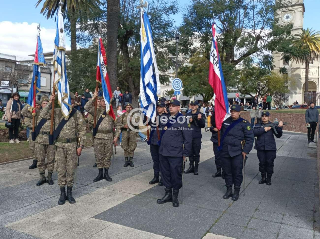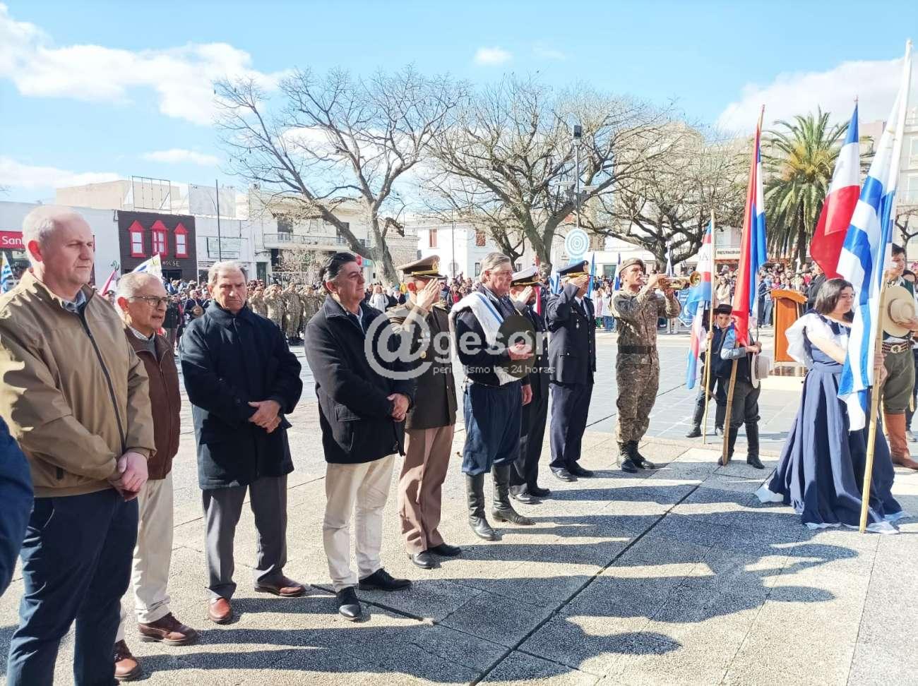Con la presencia de autoridades departamentales encabezadas por el Intendente Guillermo Besozzi (que vino integrando la Marcha Aquí Nació la Patria), el Presidente de la Junta Departamental de Soriano, Gonzalo Novales, Diputado Enzo Malán, Diputado en funciones Lic. Javier Utermark, Ediles, autoridades civiles y militares, de centros de enseñanza, integrantes de la Asociación Patriótica de Soriano presidida por Barnardo Urchipía, representantes de las Unión de Instituciones Tradicionalistas, y público en general que en muy buen número acompañó la ceremonia oficial que tuvo como aporte musical la presencia de la Orquesta Mercedes tanto el preludio como en la ejecución del Himno Nacional y Marcha Mi Bandera y posteriormente hubo show musical.