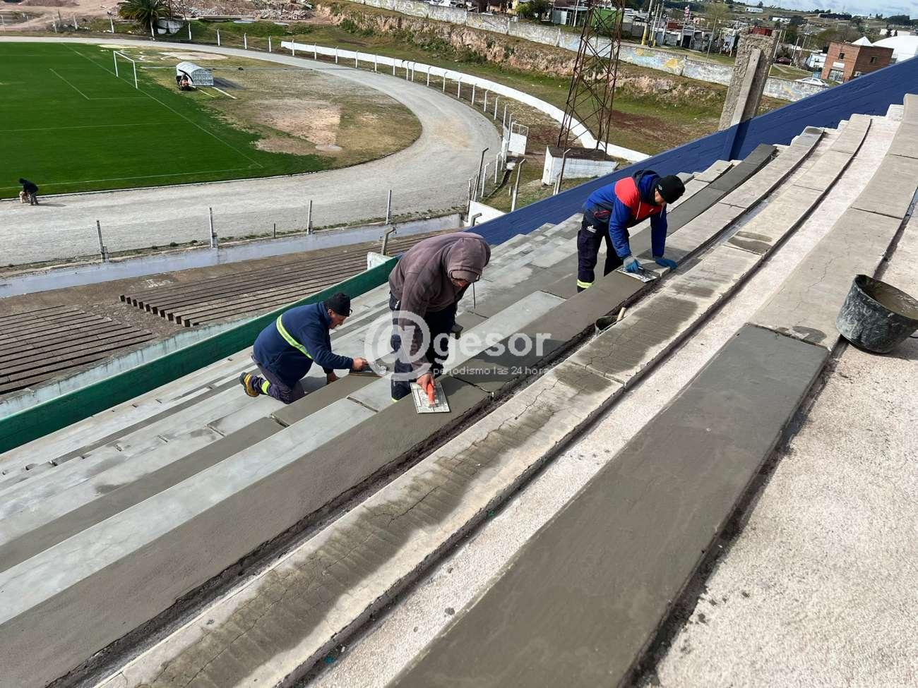 Todo eso se hace en el marco de las obras de remodelación del estadio que incluyen varias tareas en la parte interna como en el exterior, donde se realiza la pintura de la fachada por calle Varela, para luego colocar letras corpóreas e iluminación exterior.