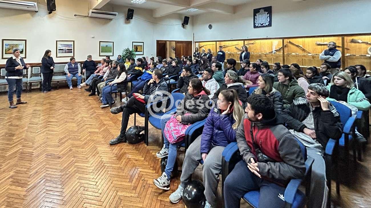 Como ya es de orden, se dividen en dos grupos los 255 beneficiarios para desarrollar tareas, por lo que 130 de ellos participaron de la charla de coordinación con técnicos y autoridades de la Intendencia de Soriano.