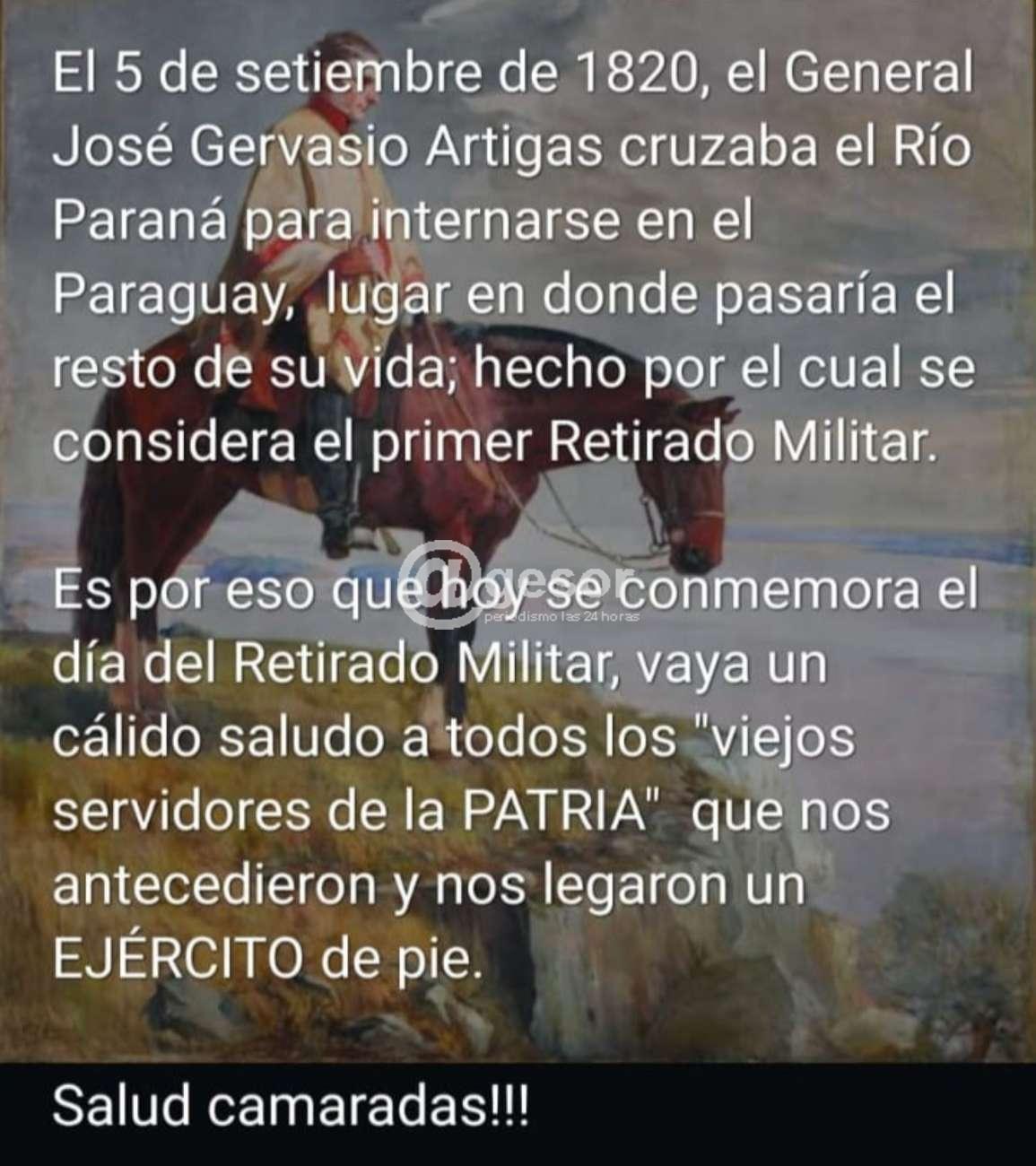 El 5 de septiembre de 1820, el General José Gervasio Artigas cruzó el río Paraná para internarse en el Paraguay, lugar en donde pasaría el resto de su vida; hecho por el cual se considera el primer Retirado Militar.