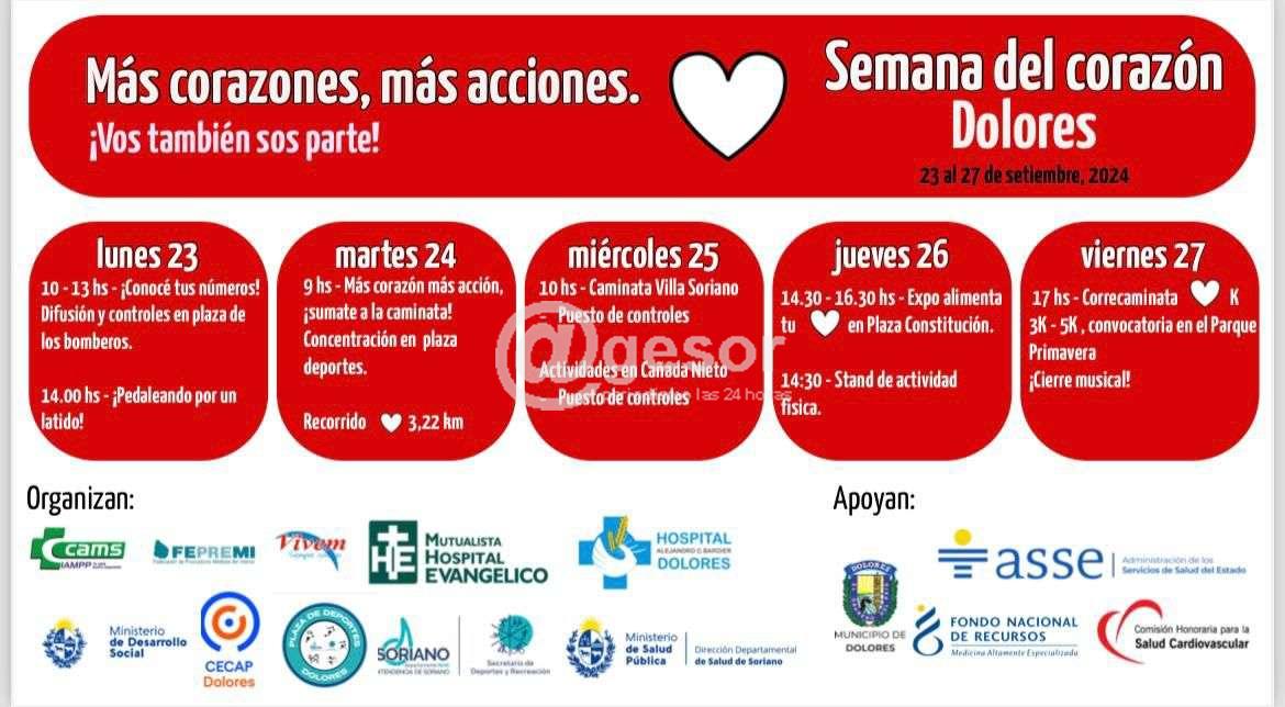 Del lunes 23 al viernes 27 de setiembre se desarrolla la Semana del Corazón en Dolores: "Más corazones, más acciones; ¡vos también sos parte!"