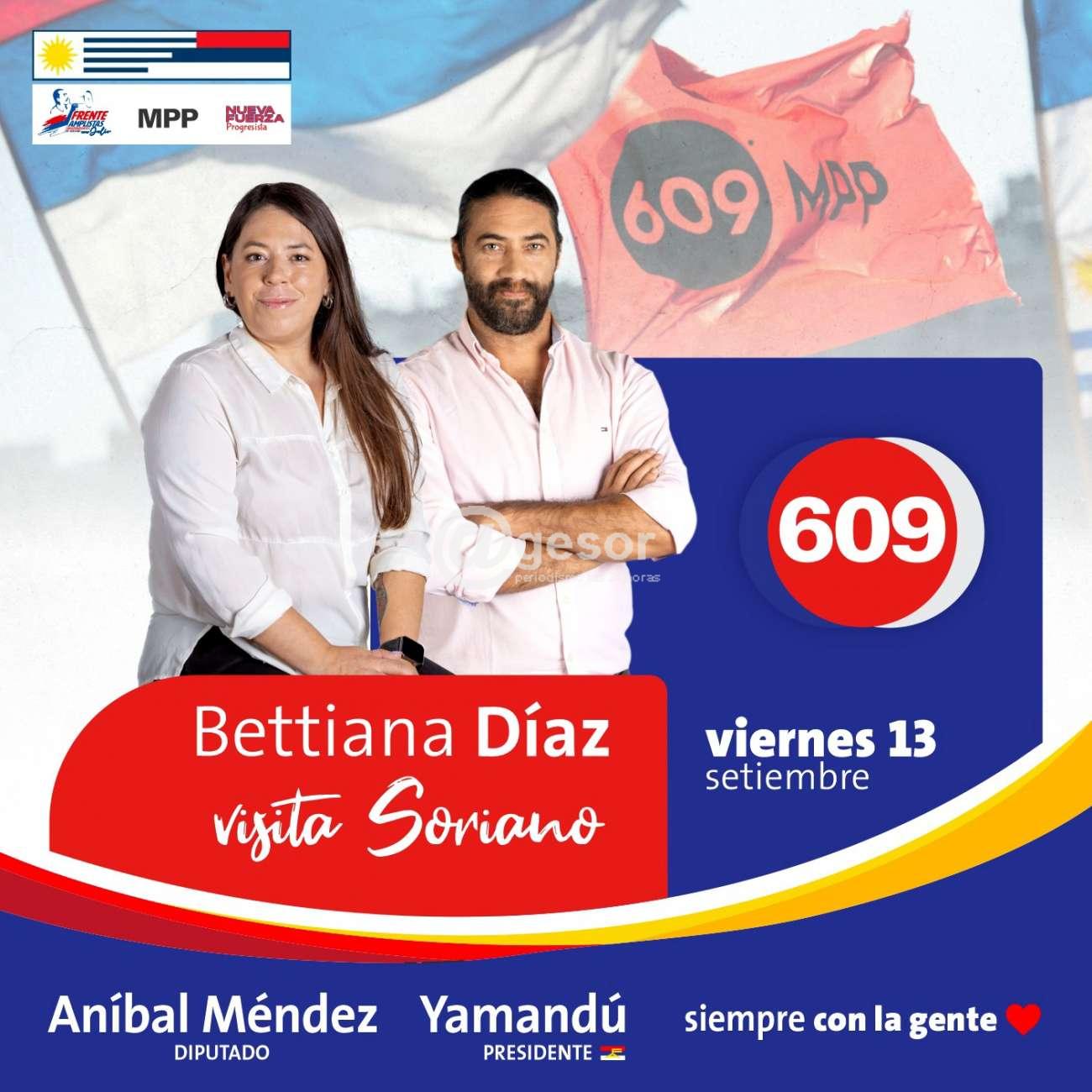 Este jueves y viernes, distintos dirigentes y legisladores recorrerán distintos departamentos y de forma particular, el viernes 13, estará recorriendo el departamento la Diputada Bettiana Díaz, en apoyo a la candidatura a la diputación del dirigente Aníbal Méndez.