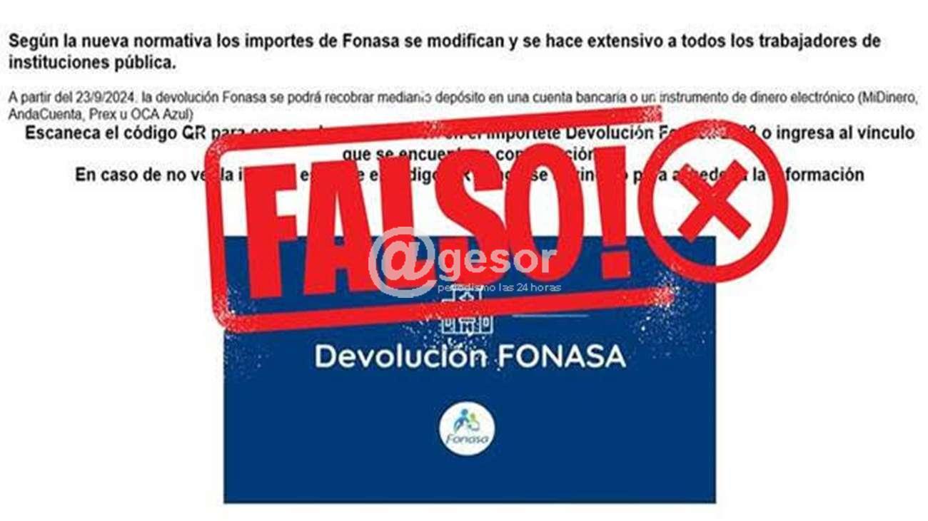 A partir de denuncias recibidas sobre correos electrónicos fraudulentos que invitan a las personas a acceder a enlaces o escanear códigos QR para informarse acerca de Devolución Fonasa, se exhorta a la población a extremar cuidados y no realizar ninguna de estas acciones.