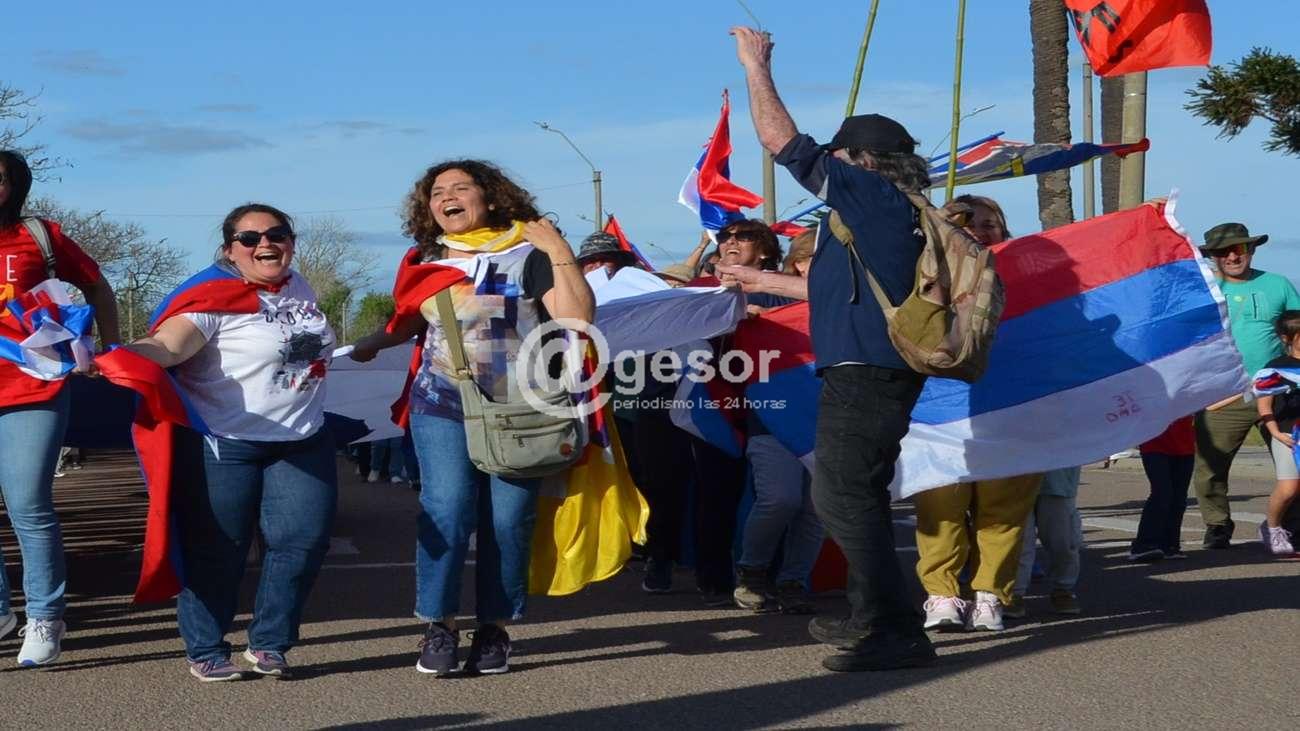 Carla Di Stasio, candidata a diputada por la lista 77, participó del  banderazo frenteamplista que recorrió las calles de Mercedes en la tarde  de este sábado.