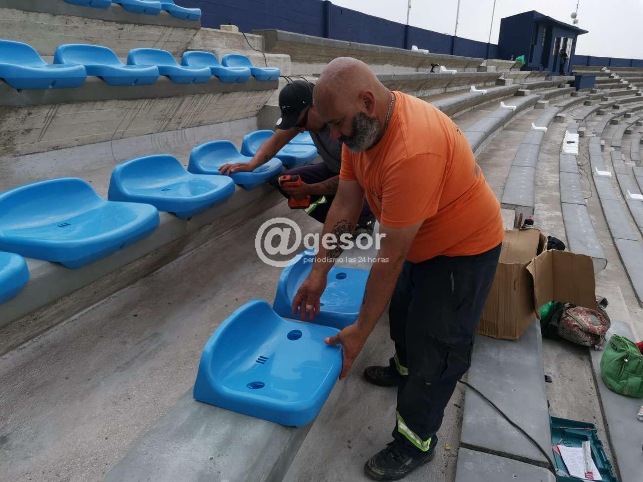 En estos días comenzó la colocación de 5.000 butacas de plástico resistente en la tribuna principal. La tarea la llevan adelante funcionarios municipales que han acondicionado la base de cada fila de asientos para la colocación de cada butaca con pernos que las fijan a la estructura de hormigón existente. Con las butacas se cubre la tribuna alta y la platea, dejando libre dos sectores en cada zona lateral de la platea y el palco.