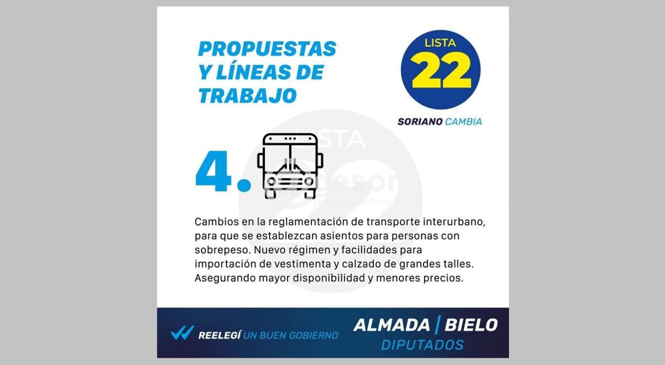 En primer lugar se identifica la problemática de todas aquellas personas con sobrepeso que usan medios de trasporte como los ómnibus, y el habitáculo individual (asiento), no posee las dimensiones y el espacio adecuado para viajar como corresponde en largas distancias. La propuesta es que las empresas de transporte adecuen asientos para este tipo de personas y en aquellas situaciones que por la configuración de fábrica no sea posible, destinar dos asientos al precio de uno, generando un boleto especial (y subsidiado por el estado) para este último caso. A su vez, estas personas también poseen problemas para conseguir ropa y calzado a la medida, generándoseles perjuicios en pérdida de tiempo, y mayores costos de acceso a la misma. Se propone que el MEF (Ministerio de Economía y Finanzas), reduzca o elimine aranceles de importación o incremente deducciones impositivas para aquellas empresas que importen y comercialicen estos talles. Con estas medidas se pretende que haya una mayor y generalizada oferta de este tipo de indumentaria y calzado especial. La verdadera inclusión es la que permite a todas las personas poder hacer su vida normal diariamente, independientemente de su condición.