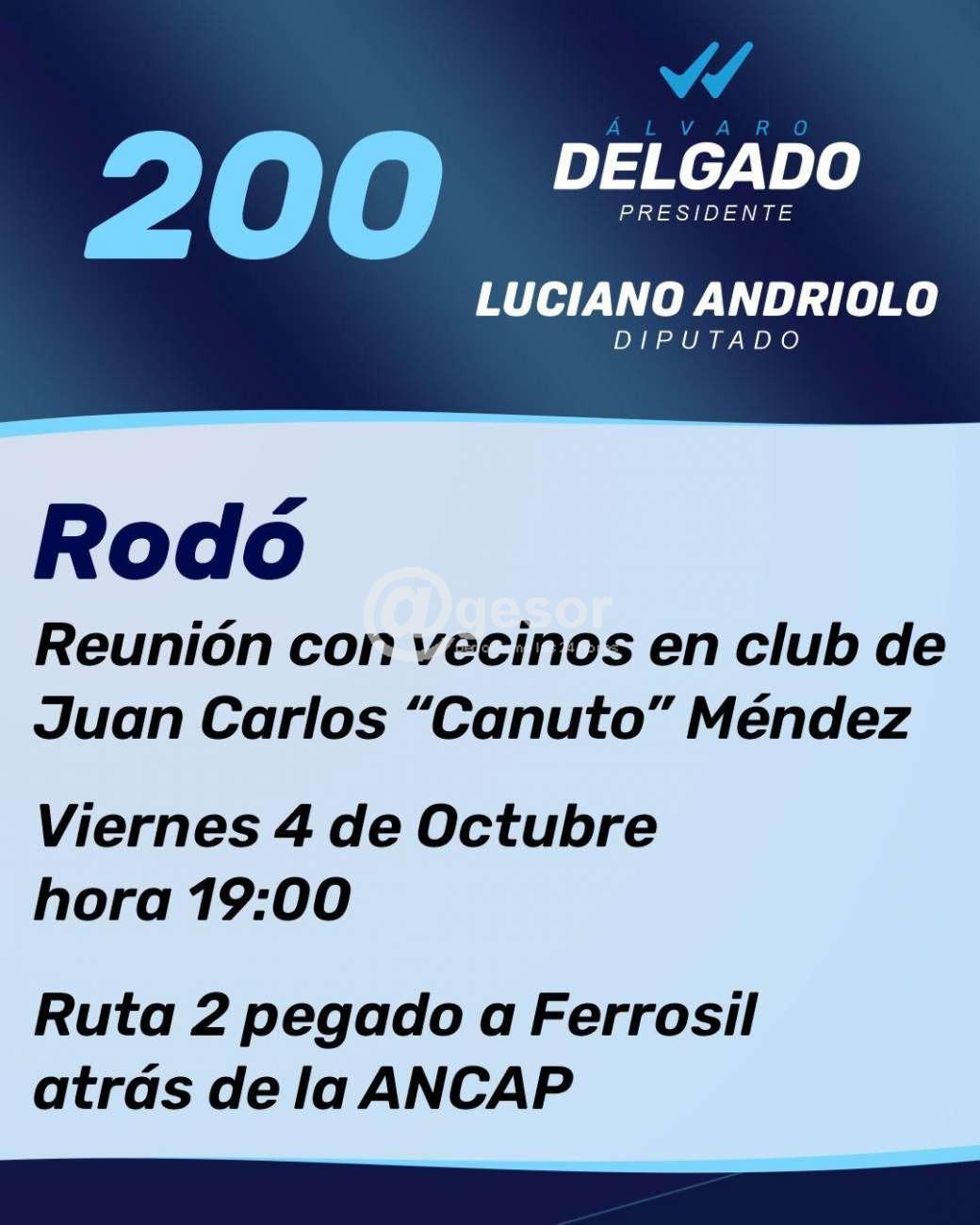 Este viernes a las 19.00 reunión del candidato a Diputado, LUCIANO ANDRIOLO con los vecinos en José E. Rodó