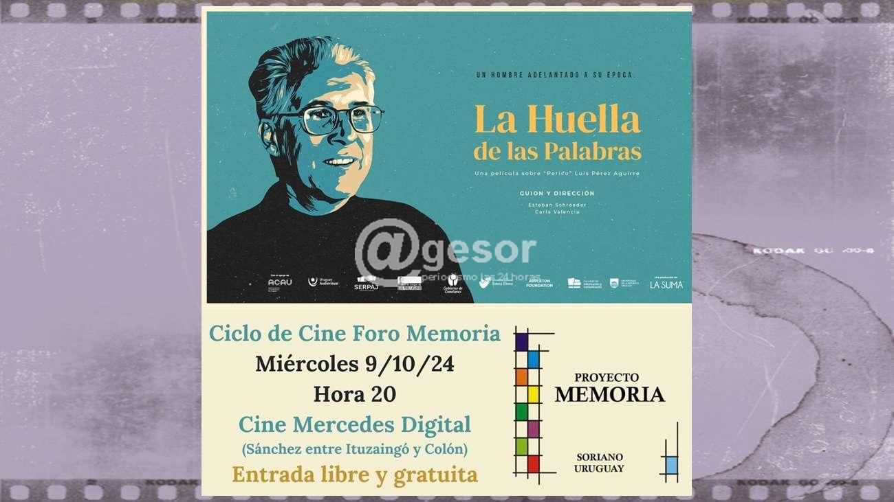 La Comisión Memoria, Justicia y contra la Impunidad de Soriano continúa con su ciclo de Cine Foro. El miércoles 9 de octubre en Cine Mercedes Digital se proyectará la película ´La huella de las palabras´, una película sobre Perico Luis Pérez Aguirre.