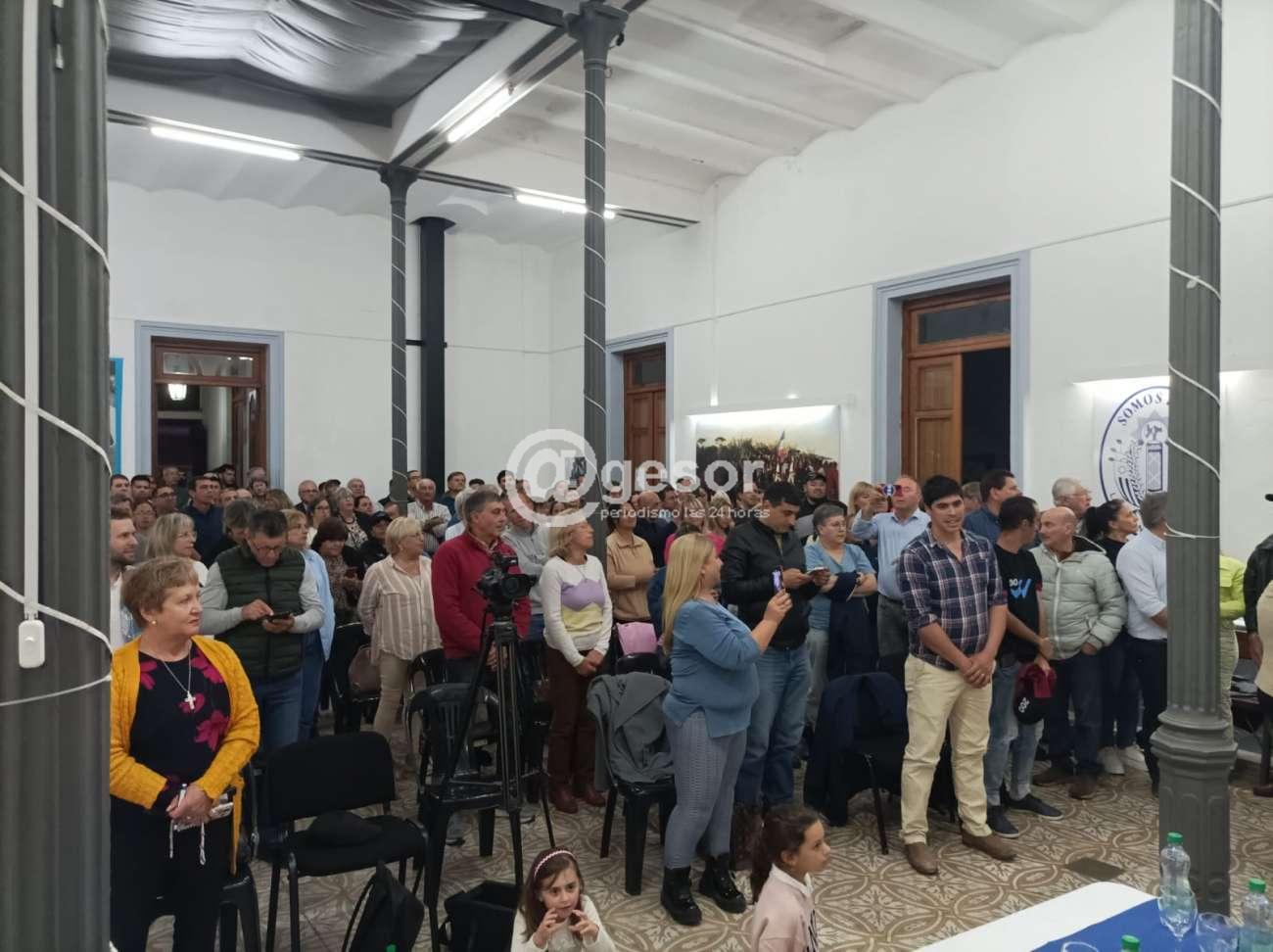 Ahí veo que está por fin, está la foto de Luis Lacalle Pou, con la de Lacalle Herrera pero quiero ver la foto de Álvaro Delgado, quiero ver la foto de Álvaro Delgado. Ahí está la foto de Lacalle Herrera, está la foto de Lacalle Pou que ha sido sin duda el mejor presidente que ha tenido el Uruguay y que ha visitado más veces el departamento de Soriano. Yo creo que la gestión se defiende sola, yo no le voy a decir que lo que tenemos que por ahí marcarle al Frente Amplio, CTI en Mercedes 79 puestos de trabajo, saneamiento universal, el puente de Perseverano, Lares, Castillo, el puente San Salvador, saneamiento para Dolores, la planta de tratamiento para Dolores, para Mercedes. Y lo hicimos todos, lo hicimos todos, cuando a veces se festeja alguna obra y no la hace el intendentes, no la hacen los alcaldes, la hacen con la plata de todos, de los cuales hay muchos compañeros ediles de otras agrupaciones, los ediles somos el último orejón del tarro, pero somos los que salimos a pedirle el votito.