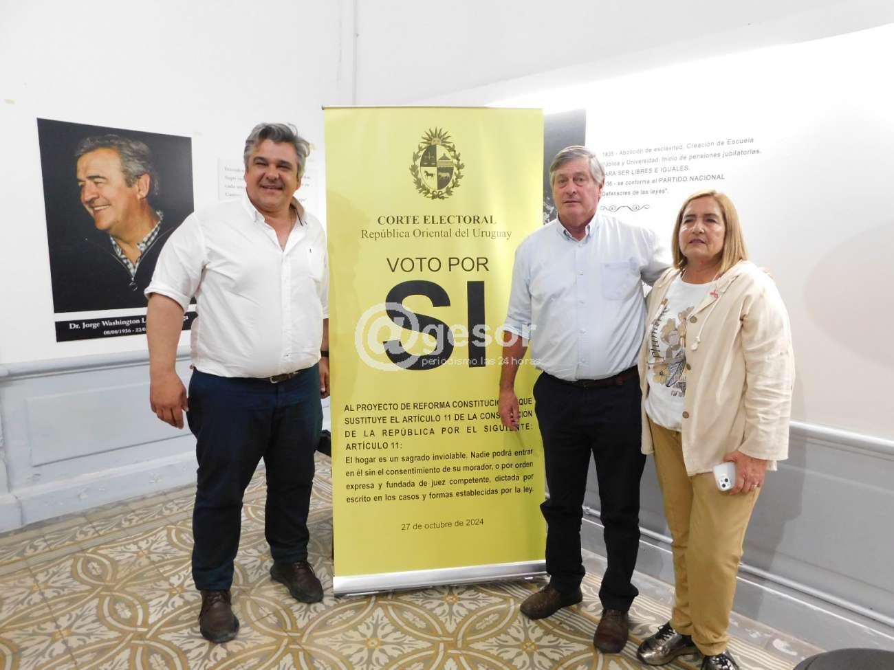 En la sede de la Departamental del Partido Nacional, se hizo presente el Senador Carlos Camy impulsor del plebiscito sobre allanamientos nocturnos, siendo recibido por el Presidente de la Comisión Departamental, Dr. Raúl Rosales, la Diputada María Fajardo, mientras entre el público asistente se encontraba el Intendente de Soriano, Guillermo Besozzi, el Presidente de la Junta Departamental Gonzalo Novales, además de ediles varios y público en general.