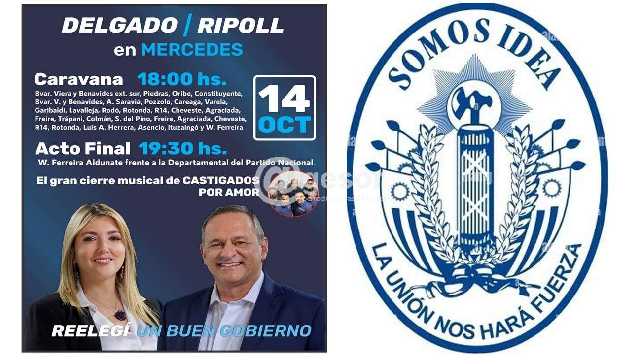 La Comisión Departamental del Partido Nacional invita: Este lunes 14 de octubre llega a Mercedes la fórmula presidenciable de ALVARO DELGADO - VALERIA RIPOLL en lo que será el acto final con presencias de los candidatos, aunque la campaña local seguirá hasta último momento, de cara a las Elecciones Nacionales del domingo 27 de octubre.
