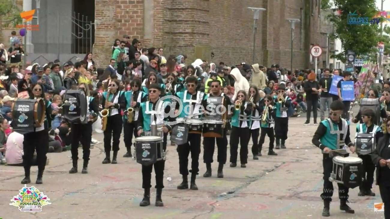 En las fotografías capturas de transmisión de Audiovisual Dolores se aprecia pasaje de Banda Show Marchante y de la comparsa lubola "Del Puerto", ambas participaron del desfile diurno.