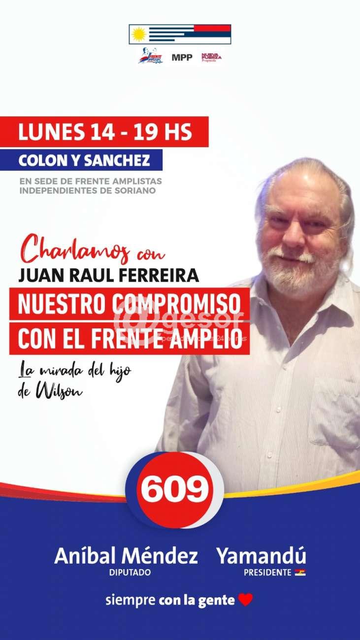 Este lunes 14, a las 19.00 horas, en sede de frenteamplistas independientes, charlamos con Juan Raúl Ferreira, invita la 609 con ANIBAL MÉNDEZ a la Diputación y YAMANDÚ Presidente