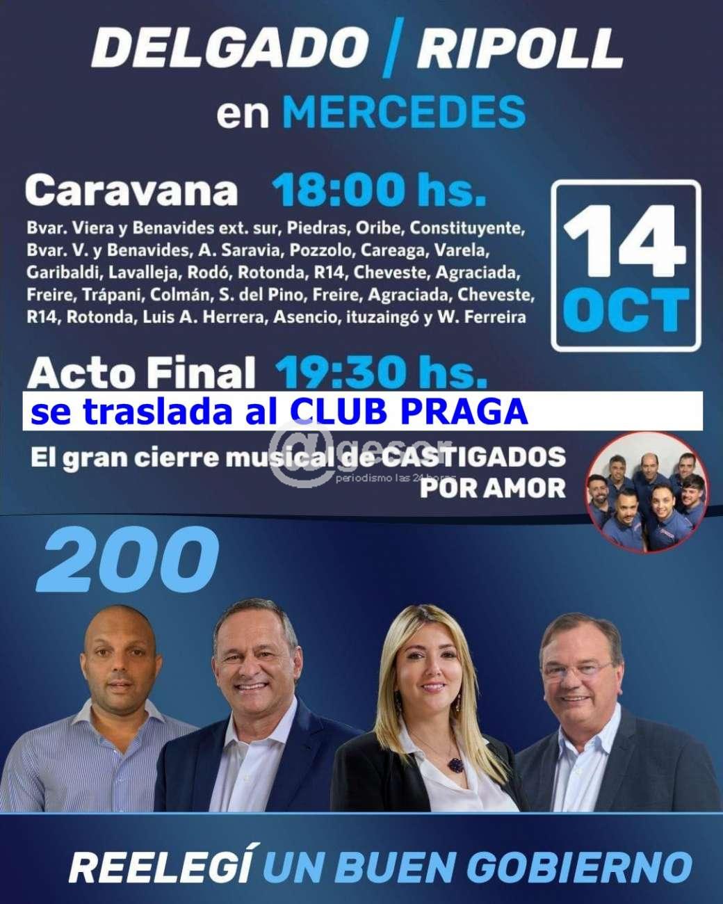 Por inclemencias del tiempo, el acto se traslada al Club Praga. Con los mismos detalles.