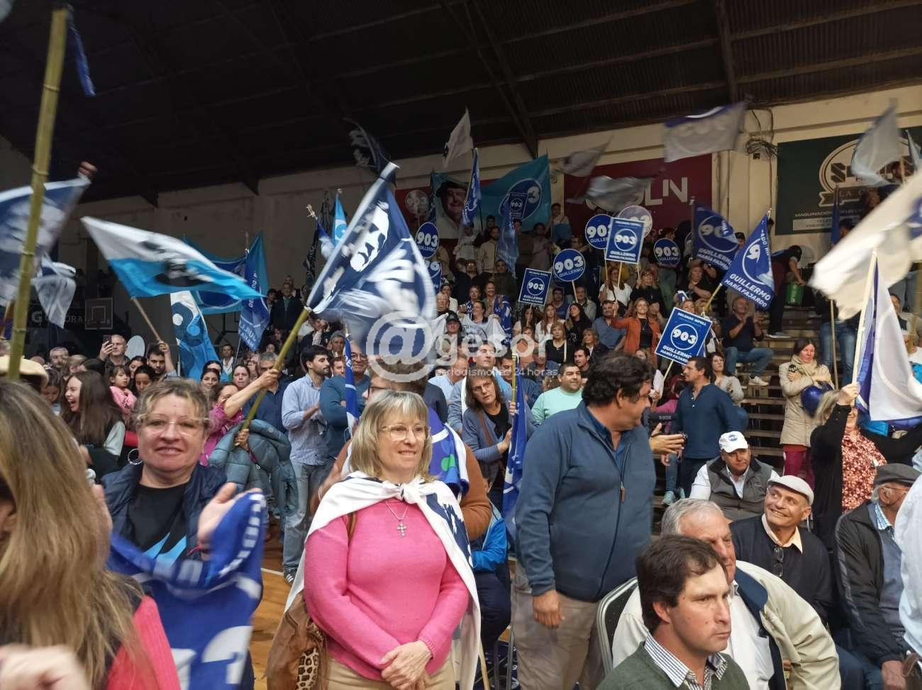 Agradecerles a todo el partido que está acá, a todo el partido, la presidenta del Directorio, y a todo el partido que está acá, el Partido Nacional unido, acá en Soriano, porque lo merecen. Agradecerles a Leticia, mi esposa, que está acompañando los actos. Agradecerles a Valeria, que tuvo la valentía y el coraje, cuando la noche, del 27, le dije que quería que fuera la compañera de fórmula, me dijo, si tú pensás que yo contribuyo, para un nuevo gobierno del Partido Nacional, contá conmigo y acá está. Gracias, Valeria. Agradecerles a los compañeros del Partido.