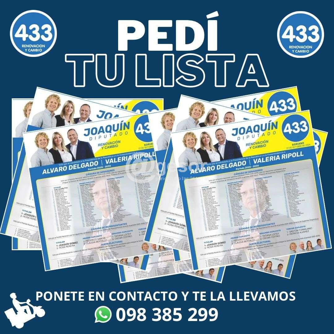 Pedí tu LISTA 433 de Renovación y Cambio con JOAQUÍN a la Diputación junto al mejor equipo para Soriano!!!