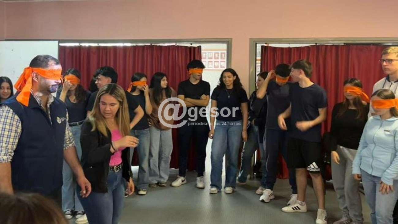 La dinámica se desarrolló en un primer momento desde el abordaje teórico de conceptos y luego desde una instancia práctica mediante el uso de bastones y cintas.