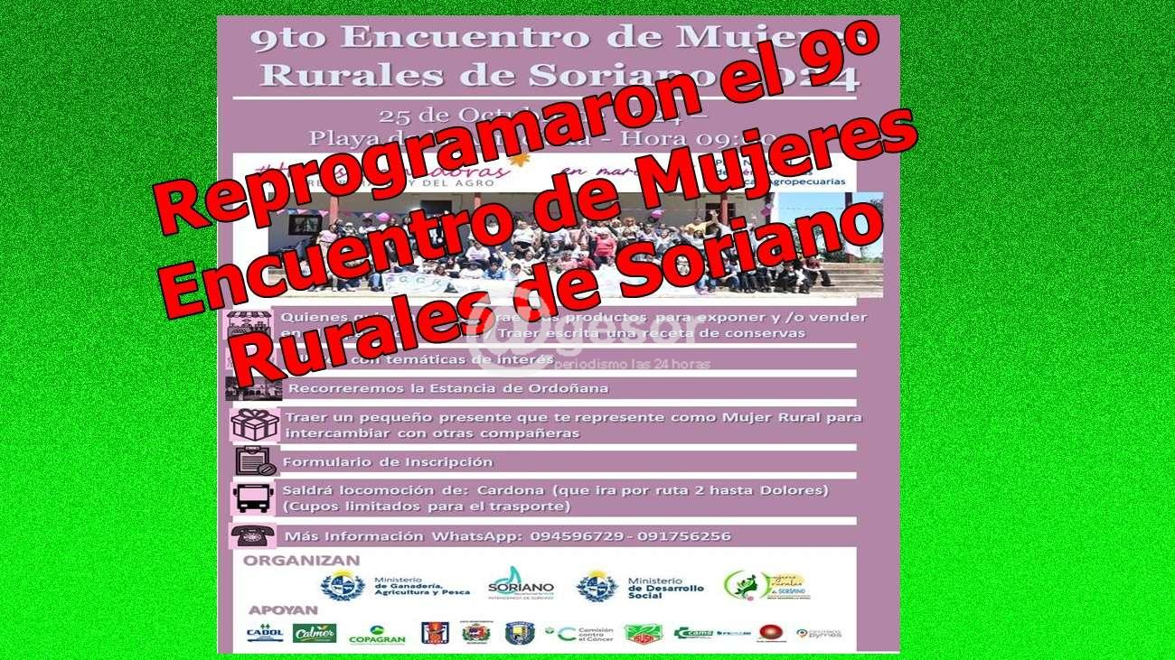 La Intendencia de Soriano a través del Dpto. de Desarrollo comunica la nueva fecha del 9º Encuentro de Mujeres Rurales de Soriano que se realizará en esta ocasión el próximo viernes 1º de noviembre a las 9 hs en playa de La Agraciada.