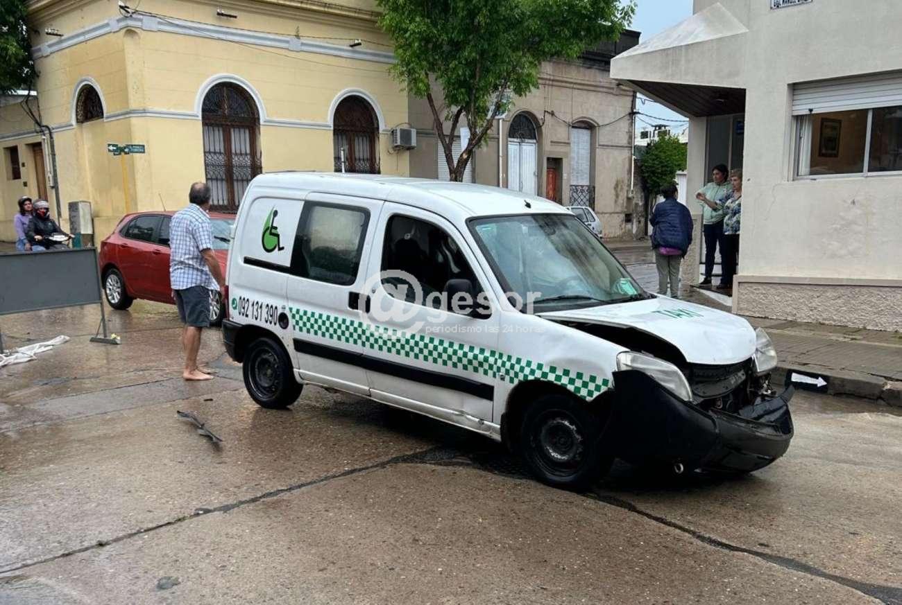Próximo a las 16.45 de la tarde de este miércoles se produjo siniestro de tránsito en la intersección de calles Manuel Oribe y Manuel Ferrería, cuando por la primera de las arterias circulaba un vehículo que presta servicios como taxi para personas con discapacidades, mientras que por Ferrería lo hacía el automóvil matrículado en Palmitas KPA 1465.