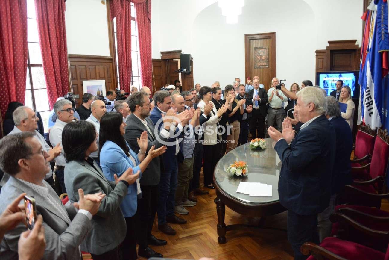 El Intendente de Colonia Dr. Carlos Moreira Reisch encabezó el acto, junto al Secretario General de la Intendencia Guillermo Rodríguez, al Presidente y Vice Presidente de la empresa Cr. Carlos Alberto Lecueder y Alfredo Lempert.