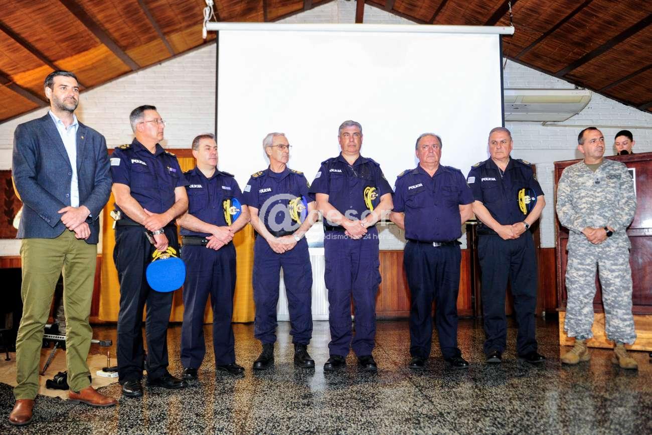 Participaron de la presentación del nuevo armamento, este 25 de octubre, el ministro del Interior, Nicolás Martinelli; el director de la Policía Nacional, José Azambuya; el director nacional y el subdirector de la Guardia Republicana, Roberto Pereira y Jorge González, respectivamente; y el encargado del grupo especial de operaciones de la Guardia Republicana, Matías Oliva.