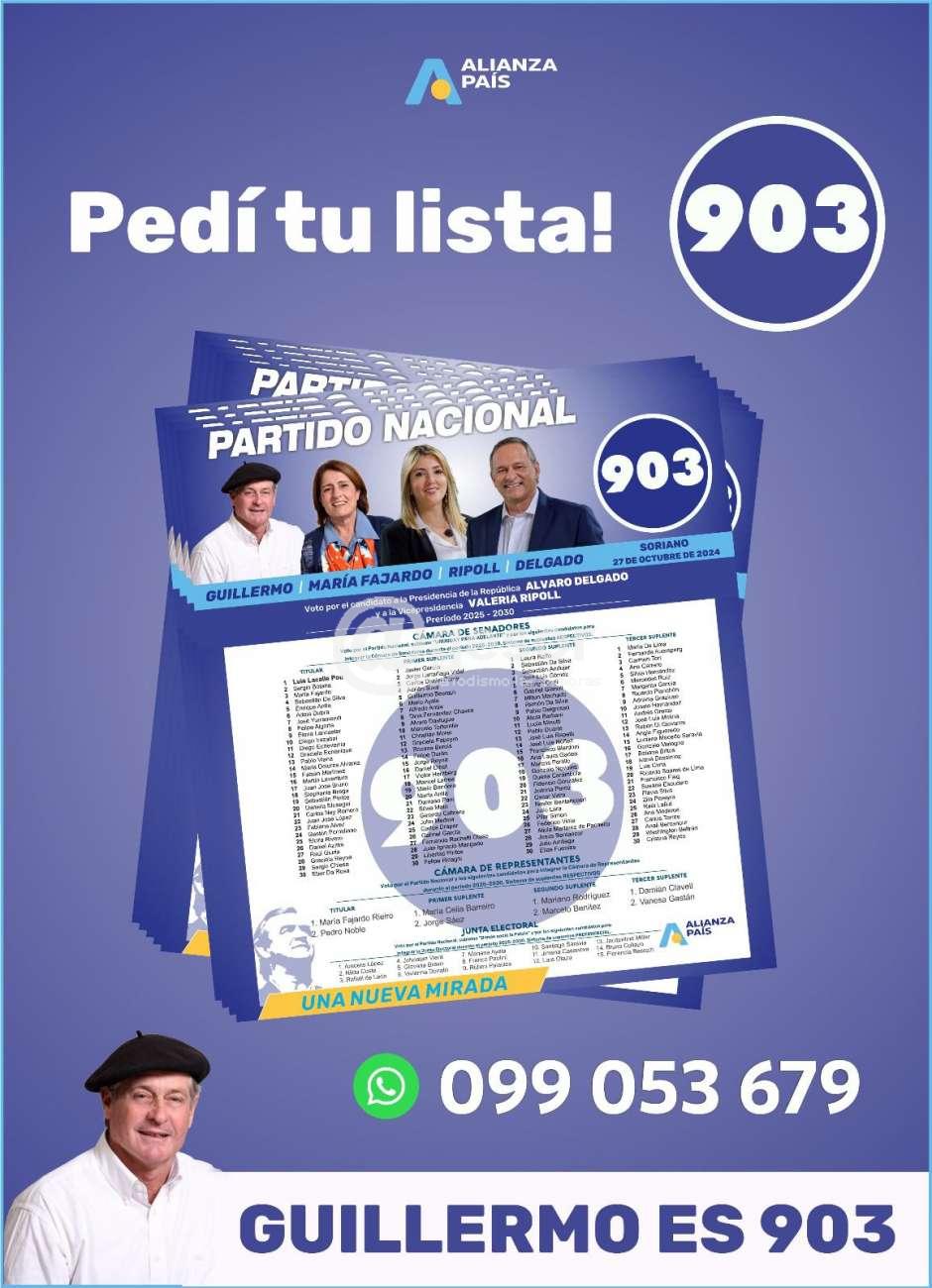 PEDÍ TU LISTA 903 AL 099 053 679, QUE TE LA LLEVAMOS!!! GUILLERMO ES 903!!!