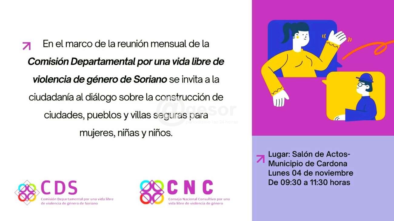 La Comisión Departamental por una vida libre de violencia de género de Soriano invita a la ciudadanía al diálogo sobre la contrucción de ciudades, pueblos y villas seguras para mujeres, niñas y niños.