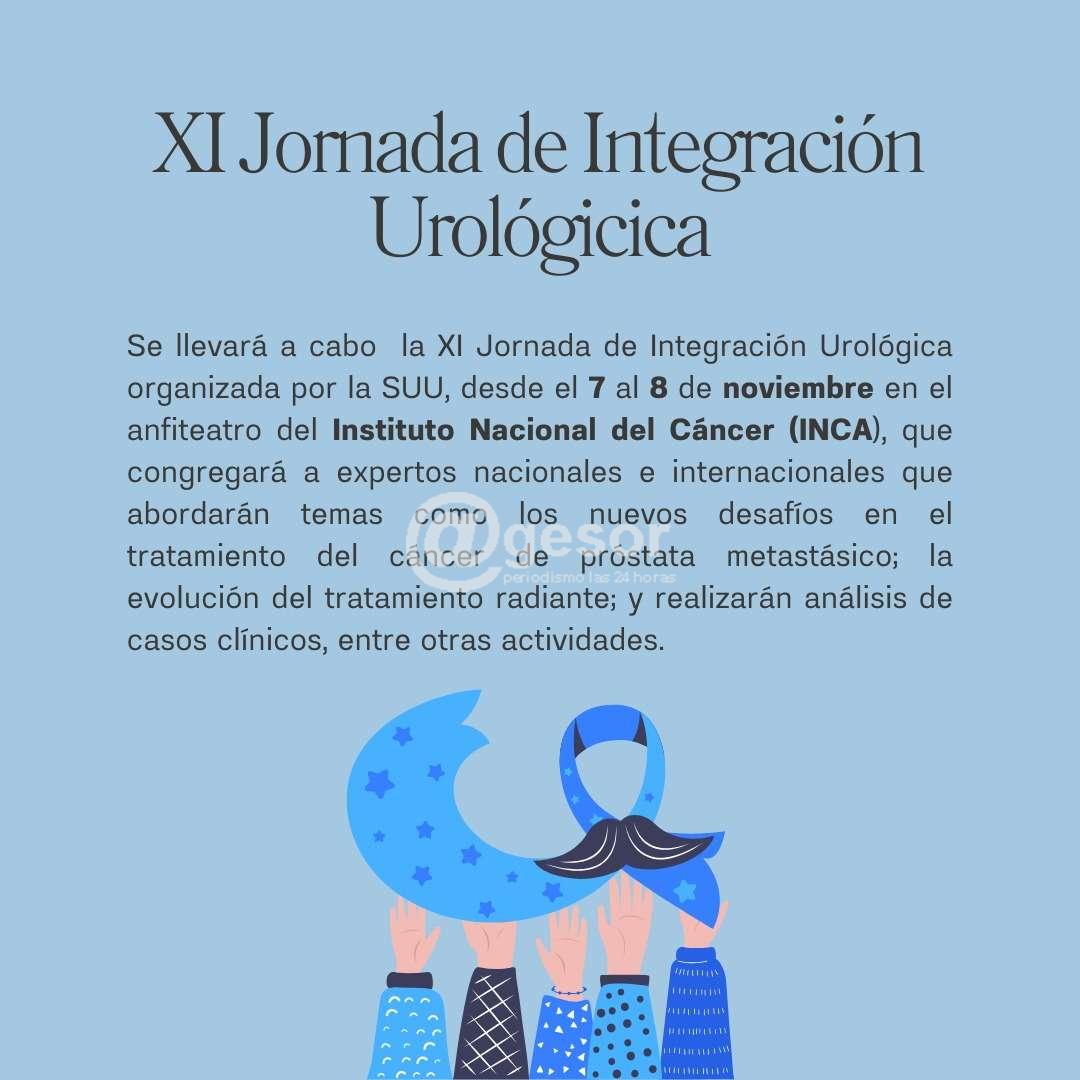 En ese marco, se llevará a cabo en Uruguay la XI Jornada de Integración Urológica, organizada por la SUU, del 7 al 8 de noviembre en el anfiteatro del Instituto Nacional del Cáncer (INCA). Este evento reunirá a expertos nacionales e internacionales que abordarán temas como los nuevos desafíos en el tratamiento del cáncer de próstata metastásico, la evolución del tratamiento radiante y análisis de casos clínicos, entre otras actividades.