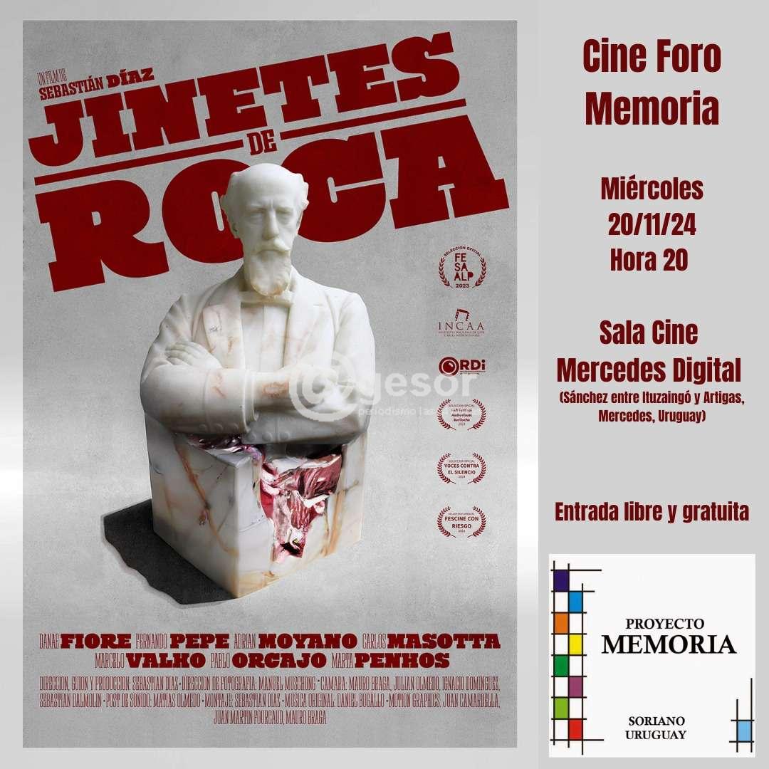 En el marco del proyecto Cine Foro Memoria que organiza la Comisión memoria, Justicia y contra la Impunidad Soriano, este miércoles 20 de noviembre se presenta en la sala Cine Mercedes Digital (Sánchez entre Ituzaingó y Artigas) en Mercedes, Soriano, desde las 20.00 horas, "Jinetes de Roca", un filme de Sebastián Díaz, con entrada libre y gratuita.