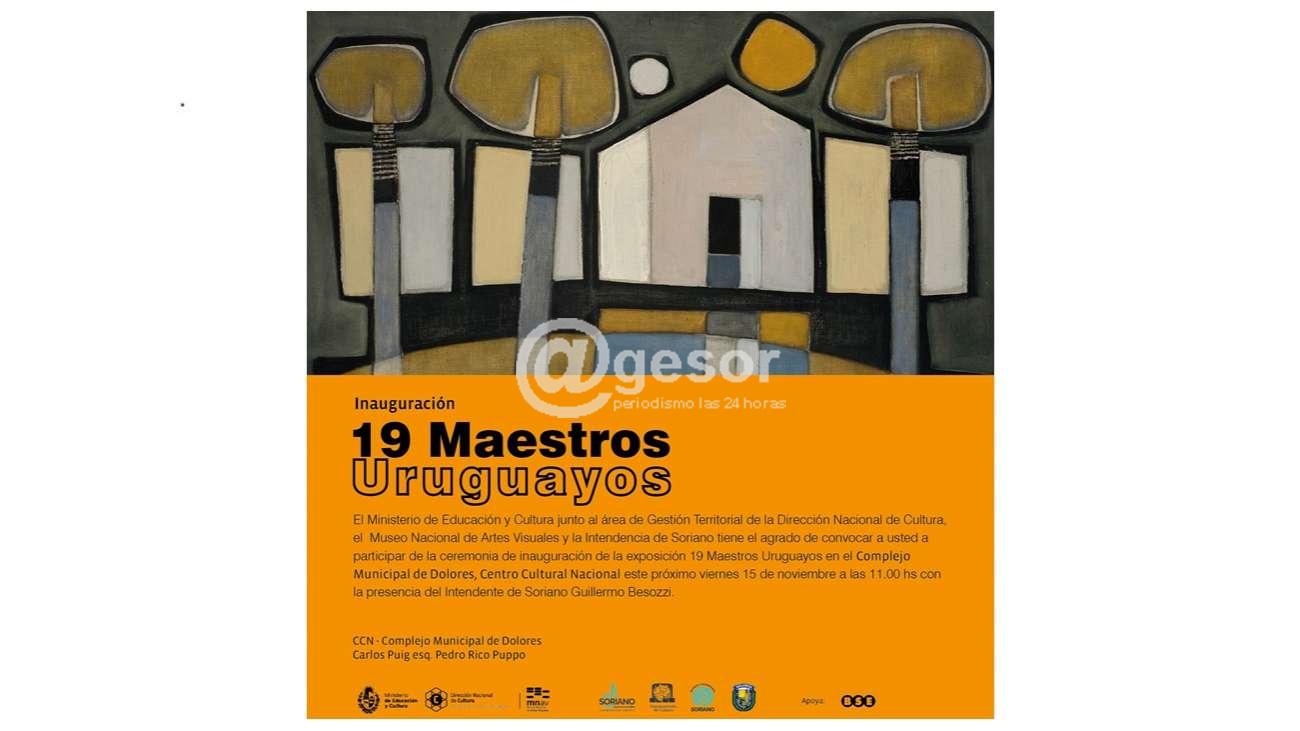 El viernes 15 de noviembre en el Centro Cultural Nacional de Dolores quedará inaugurada la muestra “19 Maestros uruguayos”. Una muestra plástica que viene recorriendo el país, organizada por el Ministerio de Educación y Cultura.