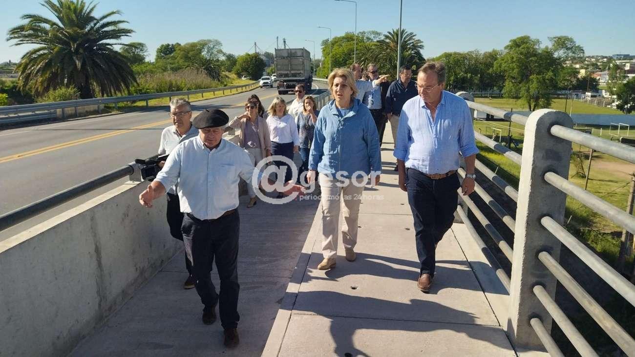 Luego el Intendente Besozzi y el Ministro Falero se trasladaron a la zona de Dolores, para apreciar el avance de las obras de construcción del nuevo puente sobre el río San Salvador. Se trata de otra de las obras de infraestructura más importantes de este periodo, una obra largamente anhelada por la comunidad doloreña y que permitirá descongestionar el tránsito (sobre todo el de vehículos pesados) del antiguo puente que ya ha sufrido las consecuencias del tonelaje que debe soportar.