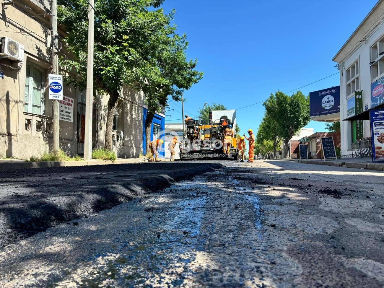 Se aplica carpeta asfáltica a calle Puig, desde Agraciada en dirección a plaza Artigas.