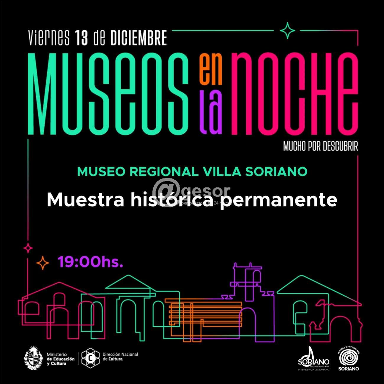 - A su vez el Museo Regional de Villa Soriano tanbién desde las 19.00 horas estará ofreciendo la oportunidad de disfrutar de la muestra histórica permanente.