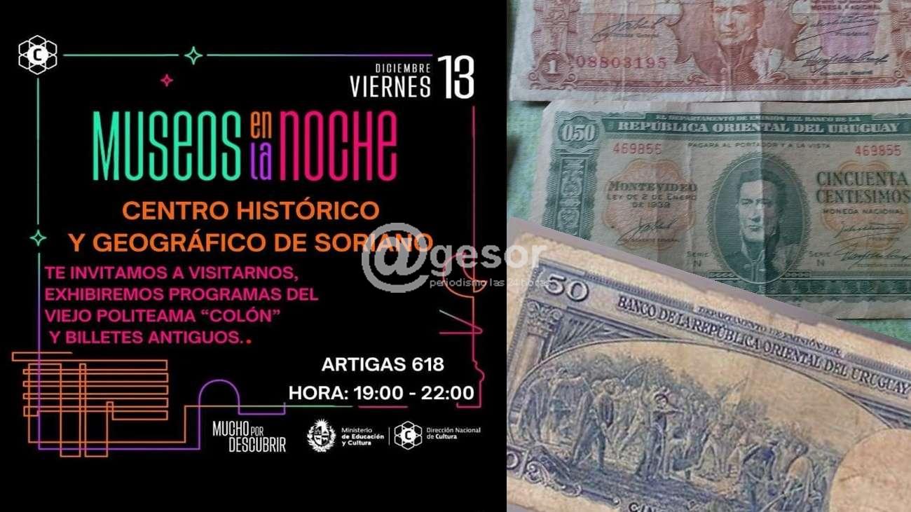 En el marco de una nueva edición de la “Noche de los Museos”, el Centro Histórico y Geográfico de Soriano, en su sede ubicada en Artigas 618, a partir de las 19 horas, este viernes 13 de diciembre se desarrollará una exposición de programas del viejo Politeama Colón y billetes antiguos.