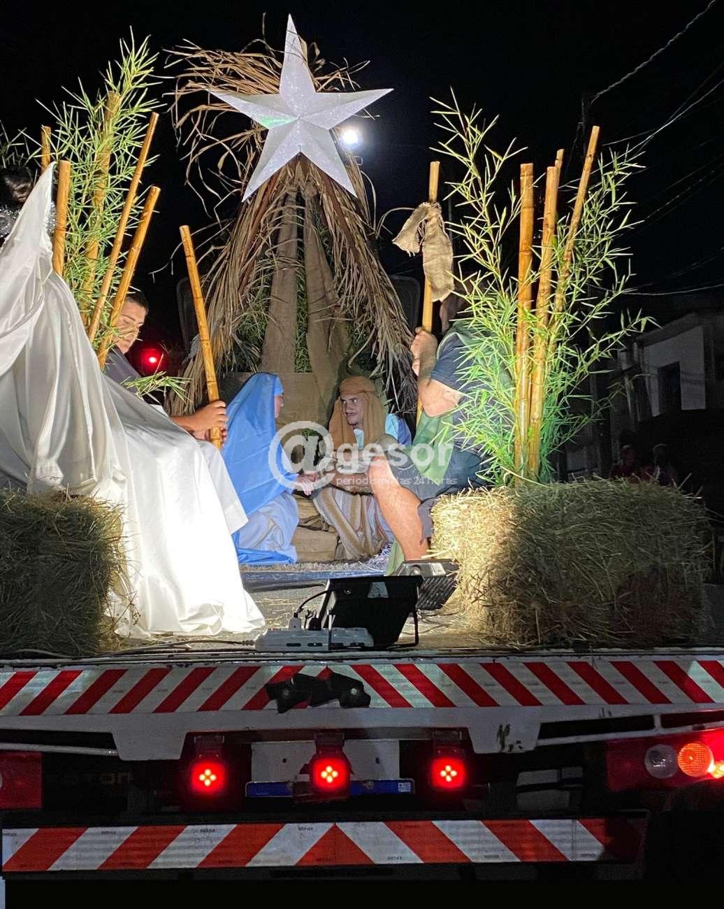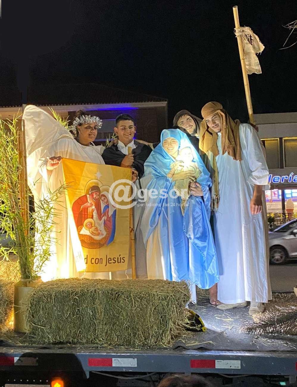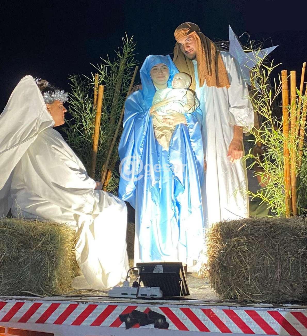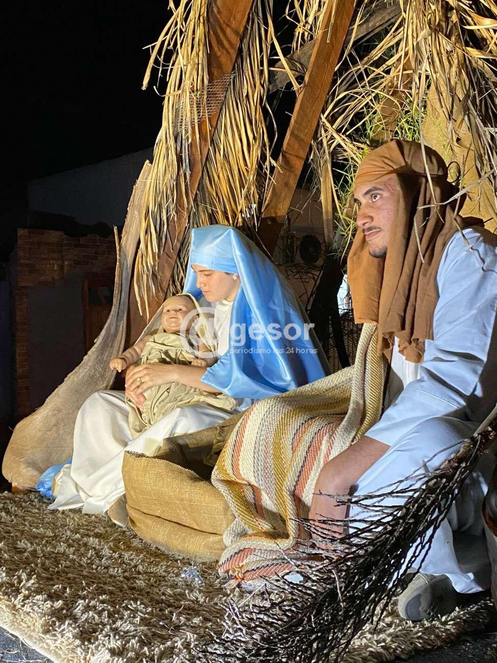 La escenografía del Pesebre Vivo, estuvo a cargo de jóvenes que -transportados en un camión- recrearon el ambiente del establo de Belén, donde el Niño Dios vino al mundo acompañado por sus padres San José y la Santísima Virgen.