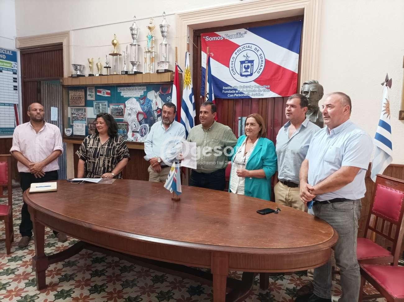 En el hall principal de la sede del Círculo Policial de Mercedes, se llevó a cabo el acto de firma de convenio entre la institución que estuvo representada por la directiva encabezada por el Presidente Juan Albiso y el MTOP cuya delegación fue integrada por Edgar Collazo (adjunto del Ministro José Luis Falero) junto a Verónica Etcheverria (Jefa de Convenios del MTOP), acompañados del Jefe Regional de Vialidad Ing. Jesús Lema y el Coordinador del MTOP para esta zona, Angel García, estando presentes también la Diputada María Fajardo, los Ediles Raúl Morossini y Luciano Andriolo.