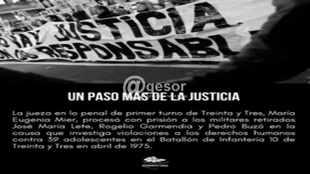 La jueza en lo penal de primer turno de Treinta y Tres, María Eugenia Mier, procesó con prisión a los militares retirados José María Lete, Rogelio Garmendia y Pedro Buzó en la causa que investiga violaciones a los derechos humanos contra 39 adolescentes en el Batallón de Infantería 10 de Treinta y Tres en abril de 1975.