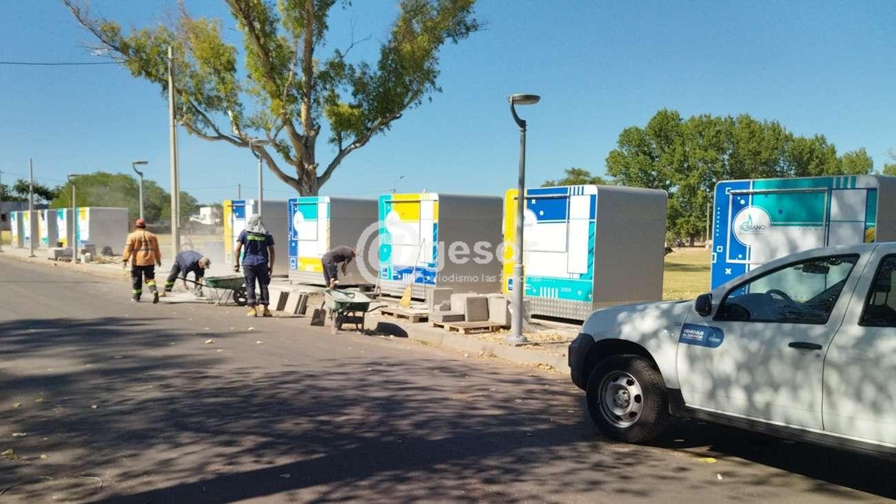 Con los módulos ya colocados, actualmente se trabaja en la colocación de baldosas en veredas, instalación de luminarias, bancos y cestos para residuos, dando paso después a detalles finales de manera de poder entregar las obras para fin de mes.