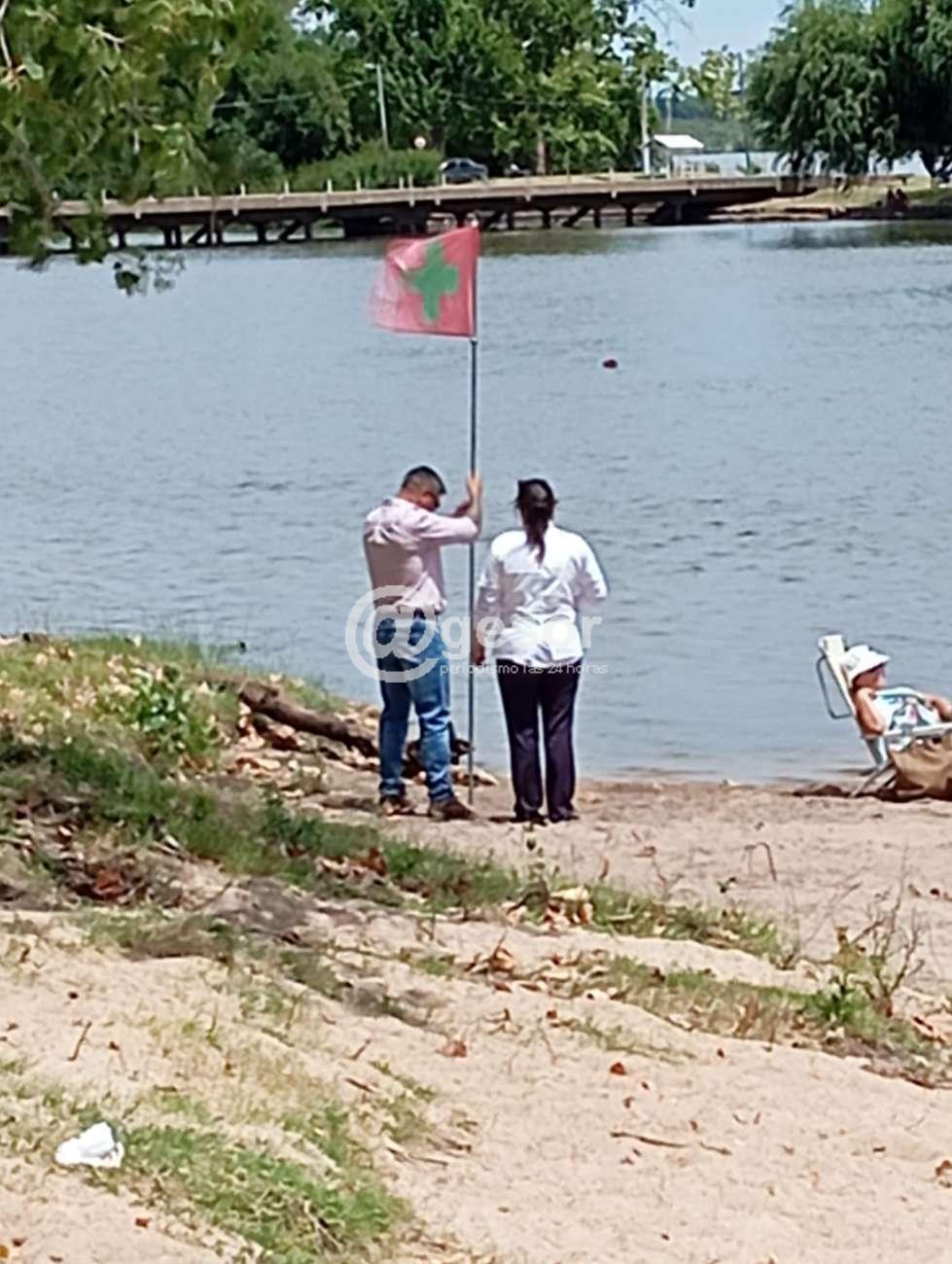 Por tal motivo se ha colocado la bandera sanitaria en las playas de Mercedes (bandera de color rojo con cruz verde en el centro) indica la existencia de riesgo sanitario para la salud.