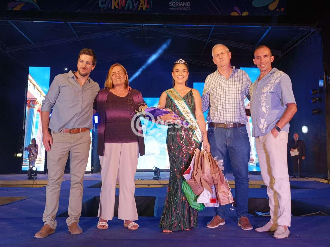 A partir de las celebraciones del sábado 1 de febrero cuando se desarrolle el desfile inaugural del Carnaval de Soriano y en todas las actividades que se desarrollen en diferentes puntos del departamento de manera oficial, estará presente la flamante Reina del Carnaval de Soriano, Joselín Galeano, quien estará acompañada por su séquito de acuerdo a lo elegido en algún caso por la gente a través de las redes sociales, en tro por las propias postulantes entre ellas y en el caso de la Soberana y las princesas por parte del Jurado.
