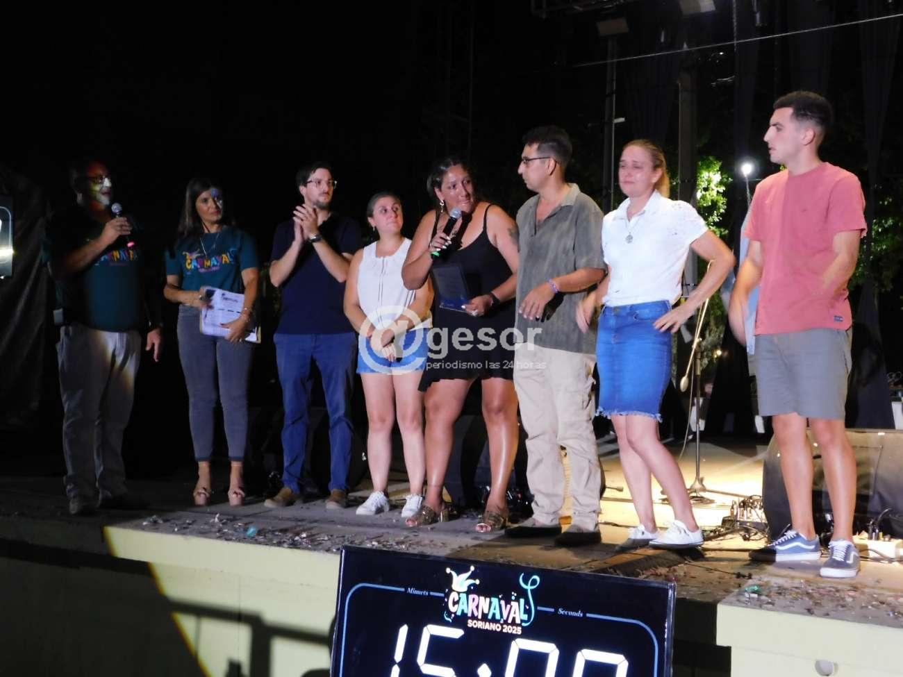Sé que están a sus familiares, acá les vamos a pedir que por favor entren, que vengan, que estén con nosotros. Un ser humano espectacular, que hasta pocos años atrás fue el Marqués de las Cabriolas del Carnaval de Soriano. Este carnaval tan lindo, tan intenso y tan querido para todos los que estamos esta noche en la Manzana.