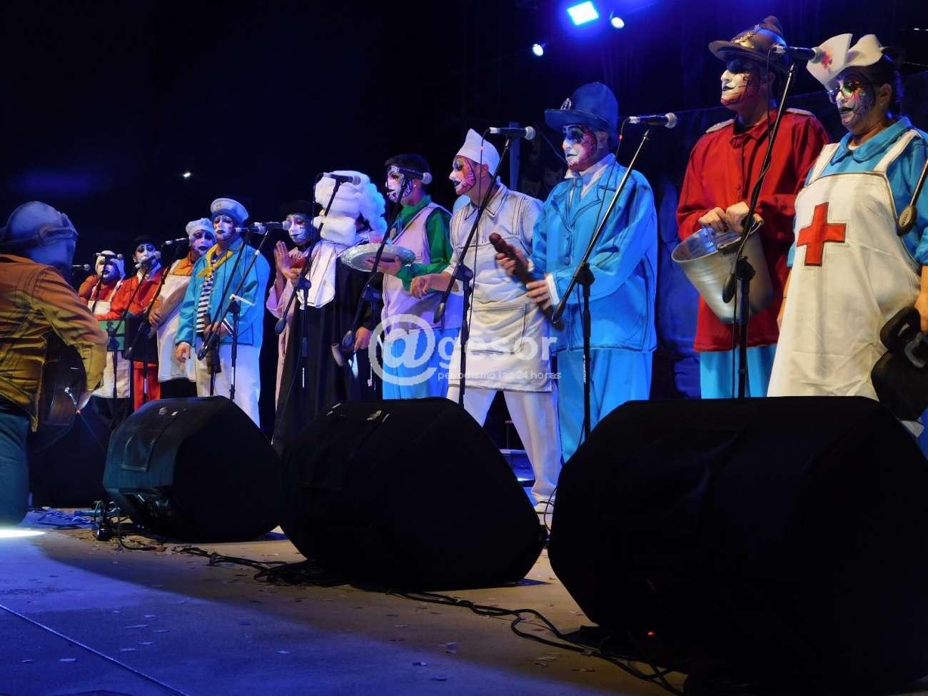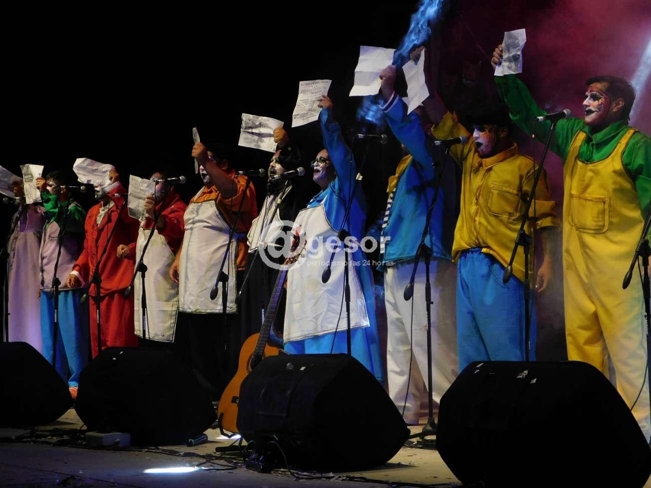 Pero también la murga presenta a diferencia de otros años una musicalidad que en la mayor parte de la actuación contagia al público y la lleva de manera notable su director Claudio Cabral, sumado a los arreglos corales y al empaste de las voces, con algún pequeño desajuste.