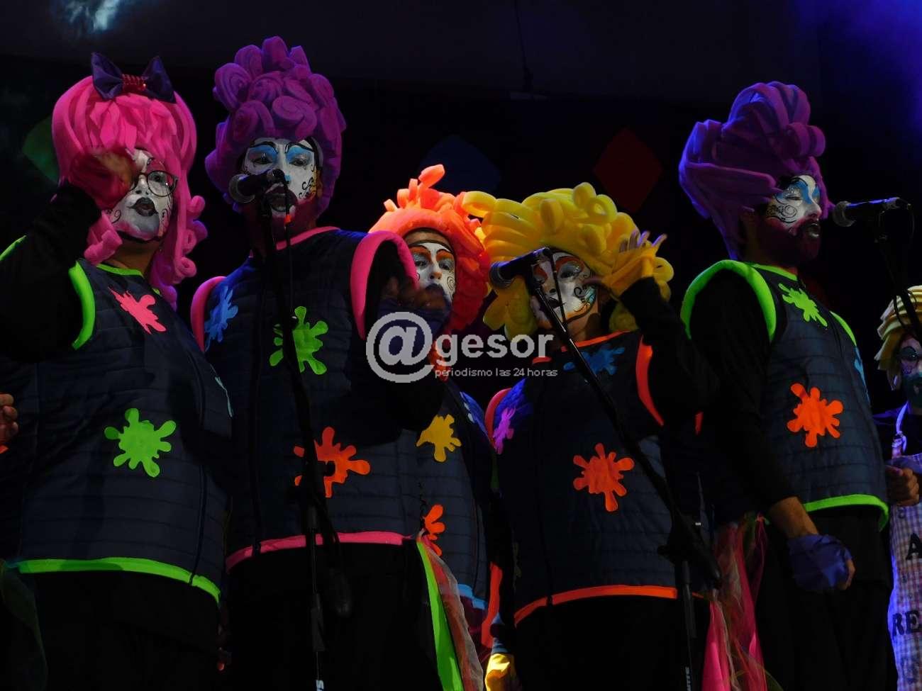 Una murga que arrancó bien, firme desde lo coral, con buenas voces y un texto que en general permite el lucimiento del grupo, salvo algunos momentos en que la murga cae porque el texto también baja su nivel, incluso se da algún error en repetir el mismo cuando hablan de las horas extras de la Intendencia de Artigas.