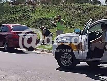 Minutos más tarde, el conductor regresó al lugar en actitud amenazante, presuntamente portando un arma de aire comprimido y expresando intenciones de agresión contra un trabajador de la estación.
